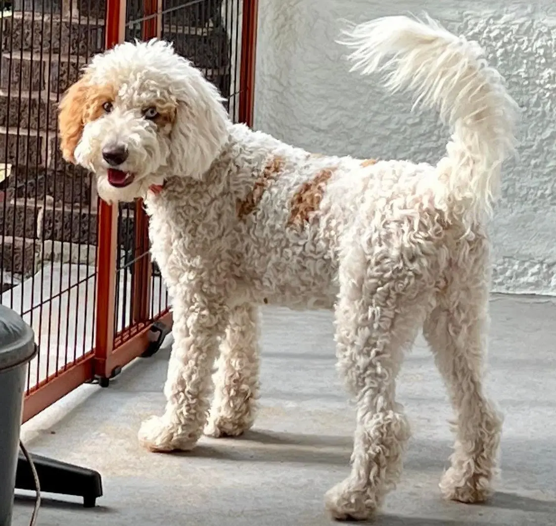 Roscoe is registered with CKC, Continental Kennel Club (CKC# GLN04960027) in the United States. Roscoe is also a Non-WALA registered and breedable dog (WALA00042768). Roscoe is a Red boy with white markings. His coat is a Fleece. He is 40 pounds and considered a medium dog. He has been extensively health tested and his PawPrint Genetics panel is clear. He is a well-trained, easy-going lover boy who is super playful and has great behavior. Completely Non-shedding and hypoallergenic, Roscoe's Multi-Generational Australian Labradoodle line can be traced back to Tegan Park and Rutland Manor, the original Australian Labradoodle breeders!